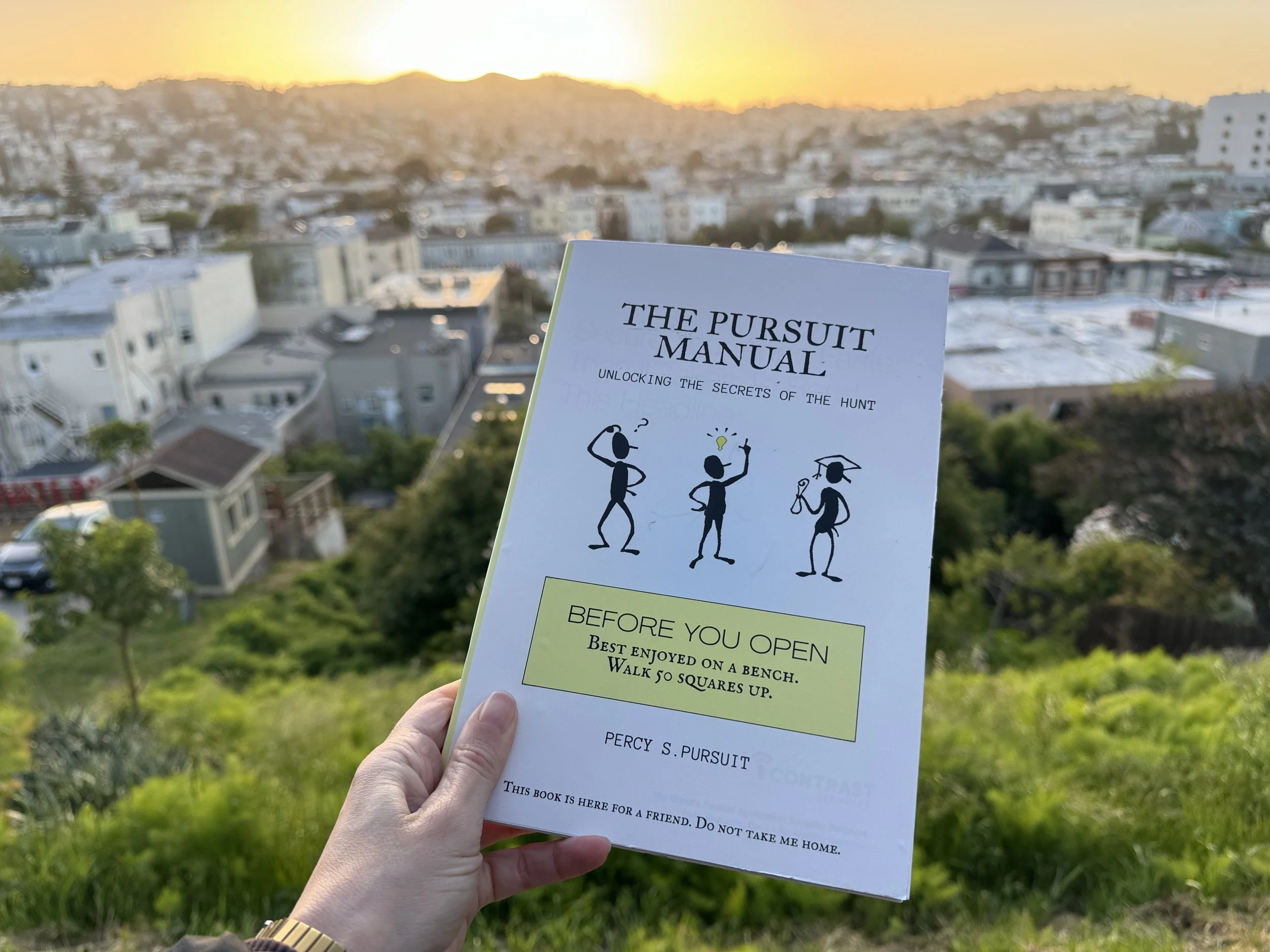 A month-long, citywide scavenger hunt and puzzle adventure across San Francisco that I co-organized with Danielle Egan, Athena Leong, and Riley Walz and 15 friends. It started with cryptic flyers posted around the city with a phone number to text. From there, players received missions over the course of a month — things like tuning into hidden hyper-local radio stations, whispering a code word at a bakery to receive a fortune cookie with a riddle inside, and or finding a sock in a broken dryer at a laundromat. You could do one mission or all of them, skip around, and join anytime. The first year, about 800 people played. The second year, 12,000 people of all ages signed up and Wired called it "the citywide scavenger hunt that ate San Francisco." The 2025 finale ended with a special movie screening, puppet show, and new friendships for the 900 people that made it to the end.